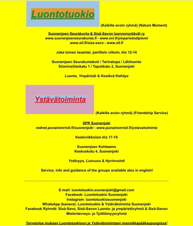 11.10.2024Jake NordicJätä kommentti artikkeliin Luontotuokio & Ystävätoiminta – Suonenjoki / Sisä-Savo Luontotuokio & Ystävätoiminta – Suonenjoki / Sisä-Savo Suonenjoki: http://www.suonenjoki.fi Jaa: Click to share on X(Avautuu uudessa ikkunassa) X Jaa Facebookissa(Avautuu uudessa ikkunassa) Facebook Tykkää Lataa... Aiheeseen liittyy