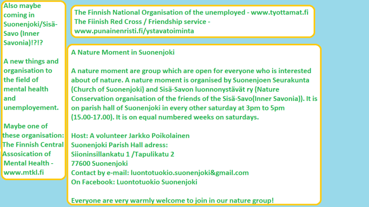 A Nature Moment of Suonenjoki +Mental Health & Unemployment Mental Health & Unemployment groups of Inner Savonia in facebook: Sisä-Savon Mielenterveys- ja Työttömyysryhmä Jaa: Click to share on X(Avautuu uudessa ikkunassa) X Jaa Facebookissa(Avautuu uudessa ikkunassa) Facebook Tykkää Lataa...
